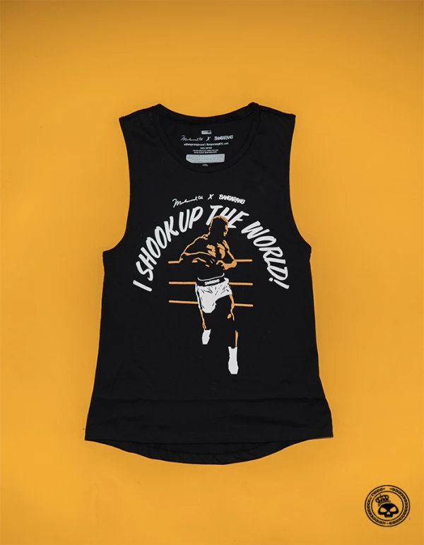 Officially Licensed Bangarang x Ali “Shook Up The World” Women’s Tank Top Sideseamed. Relaxed, drapey fit. Low cut armhole. Super soft. Curved bottom hem. 40% poly/30% cotton/30%Â