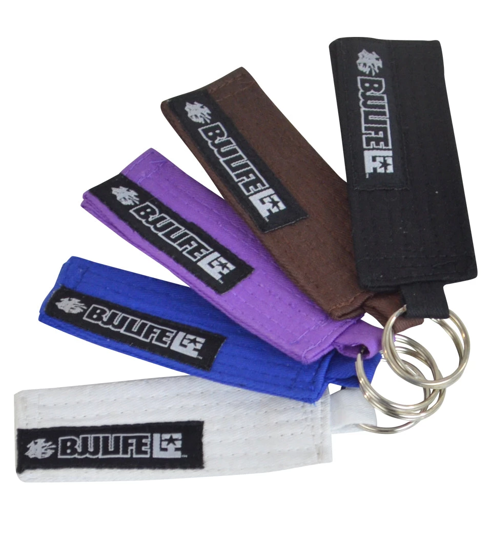 BJJ Life brings you an awesome way to show off your rank so no one tries to swipe you keys!  Made of real BJJ belt material with a key rings to put all of your keys on. Â