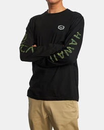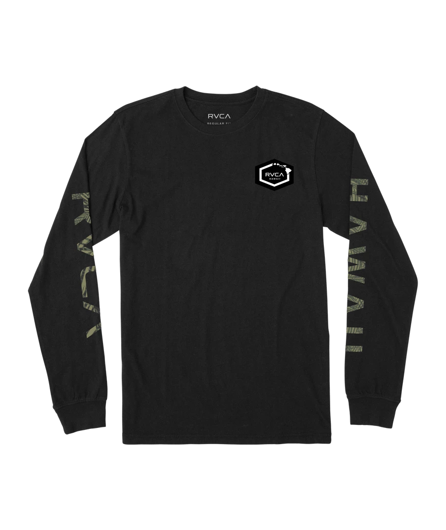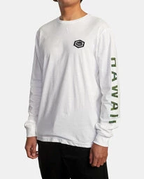 Clean design, with understated style, the Hawaii Hex Long Sleeve T-shirt offers it all. This men’s lightweight, crew/neck t-shirt is made from combed cotton jersey and features graphics at the sleeves and a RVCA Hawaii Woven label at the chest for a bold look. Â
