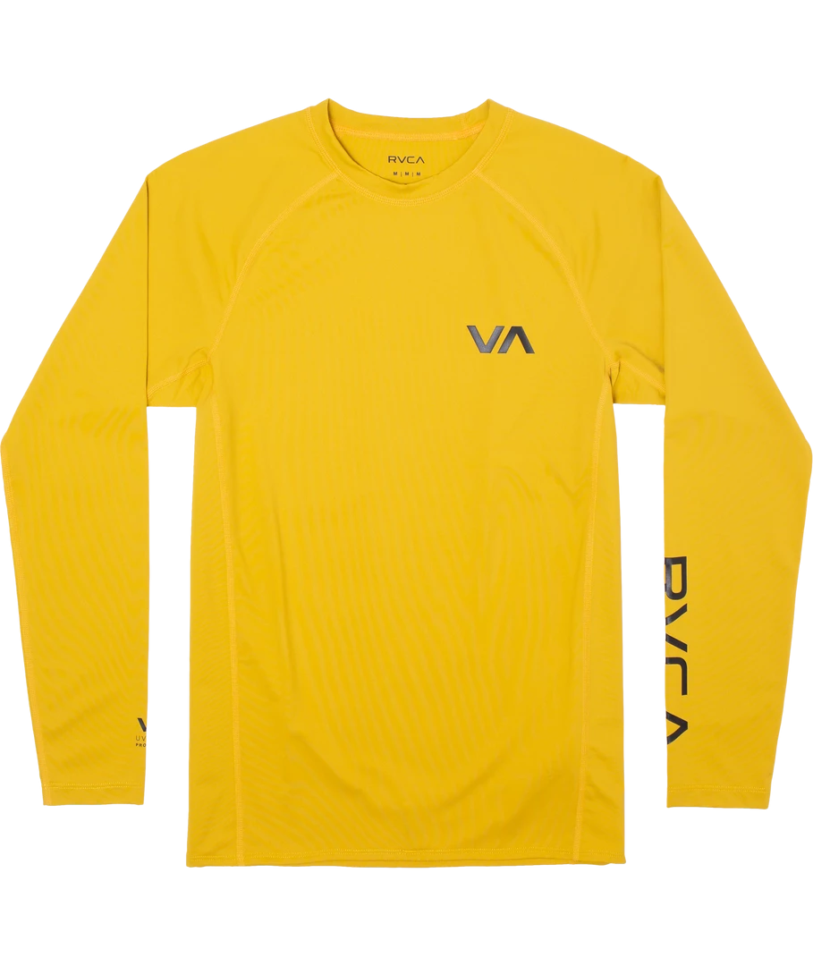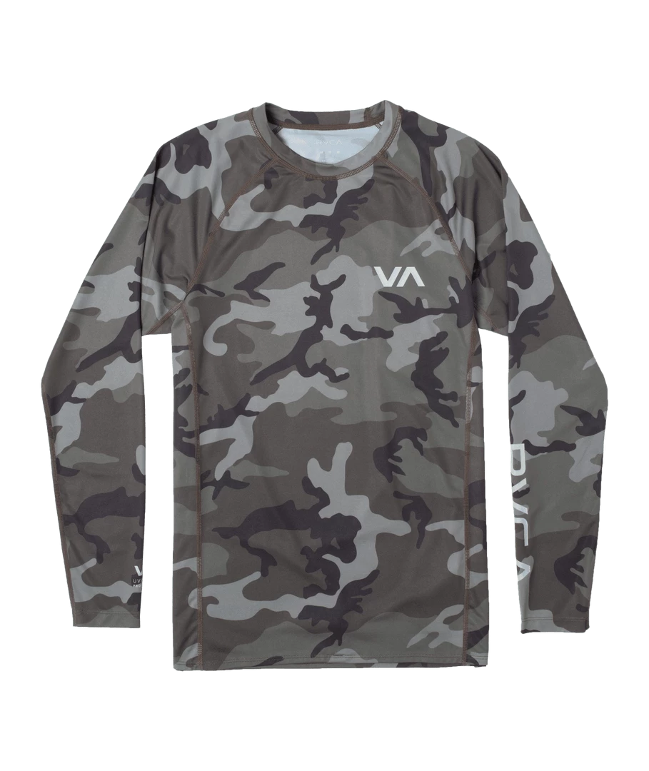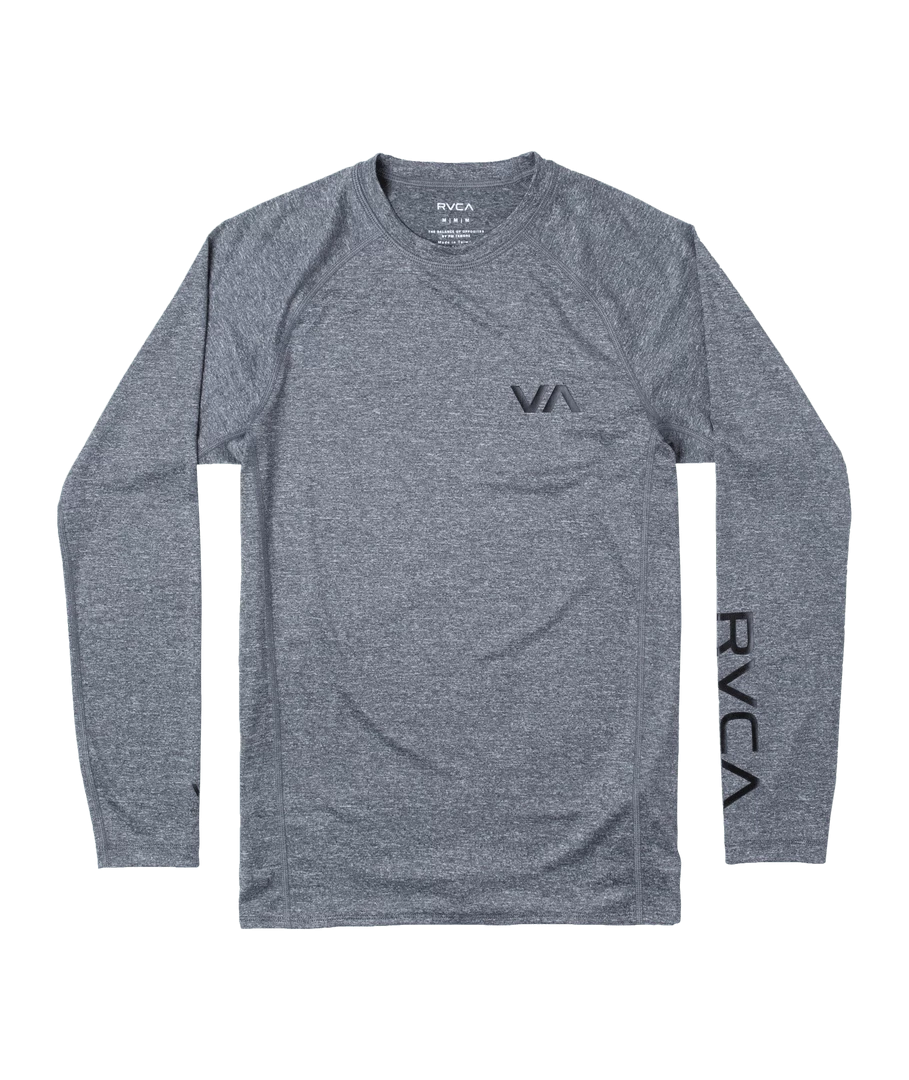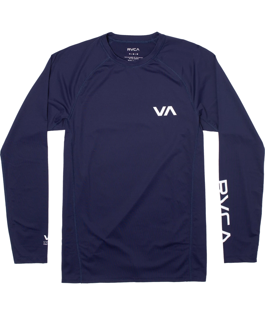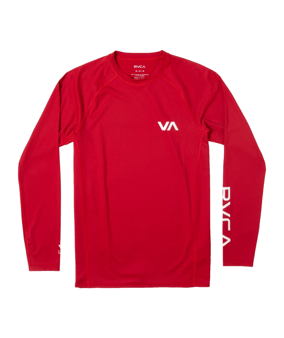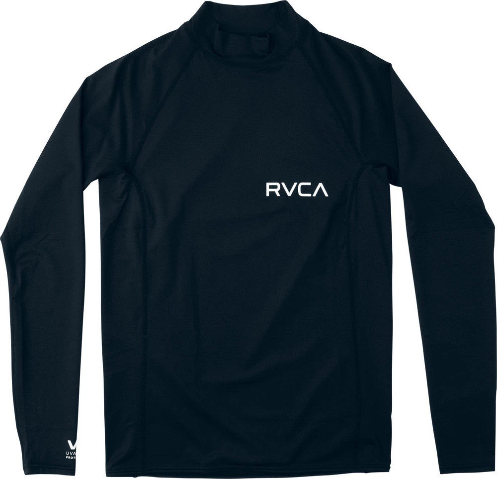 Combining sun protection and style in one, the RVCA Long Sleeve Rashguard offers stretchy, comfortable, watertight coverage while you surf. This Curren Caples collection rashguard features long sleeves, UVA and UVB protection, a hidden back key loop and RVCA VA branding.Â