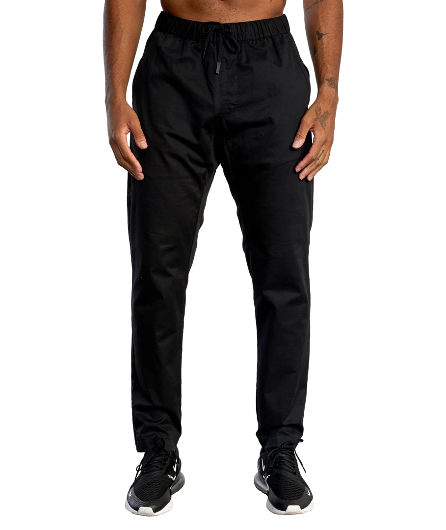 Whether you’re working out in comfort or staying cozy, the RVCA Spectrum track pants III got you covered. These cotton stretch sweats feature an elastic draw cord waist, straight cuffs and zippered pockets for your needs. Topped with VA RVCA log branding.Â