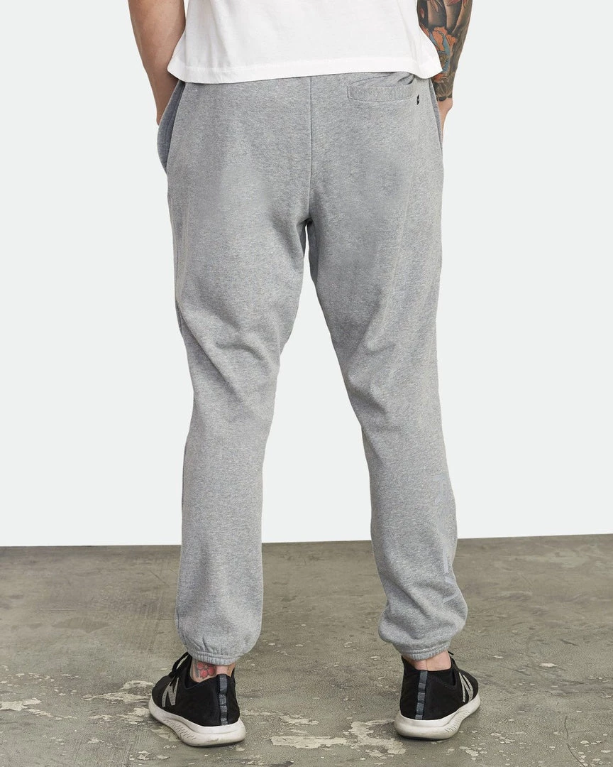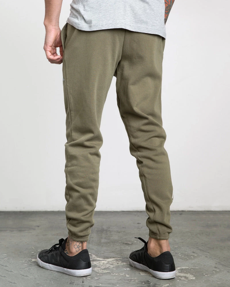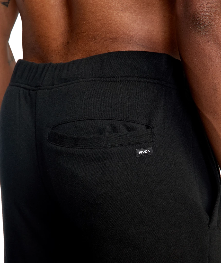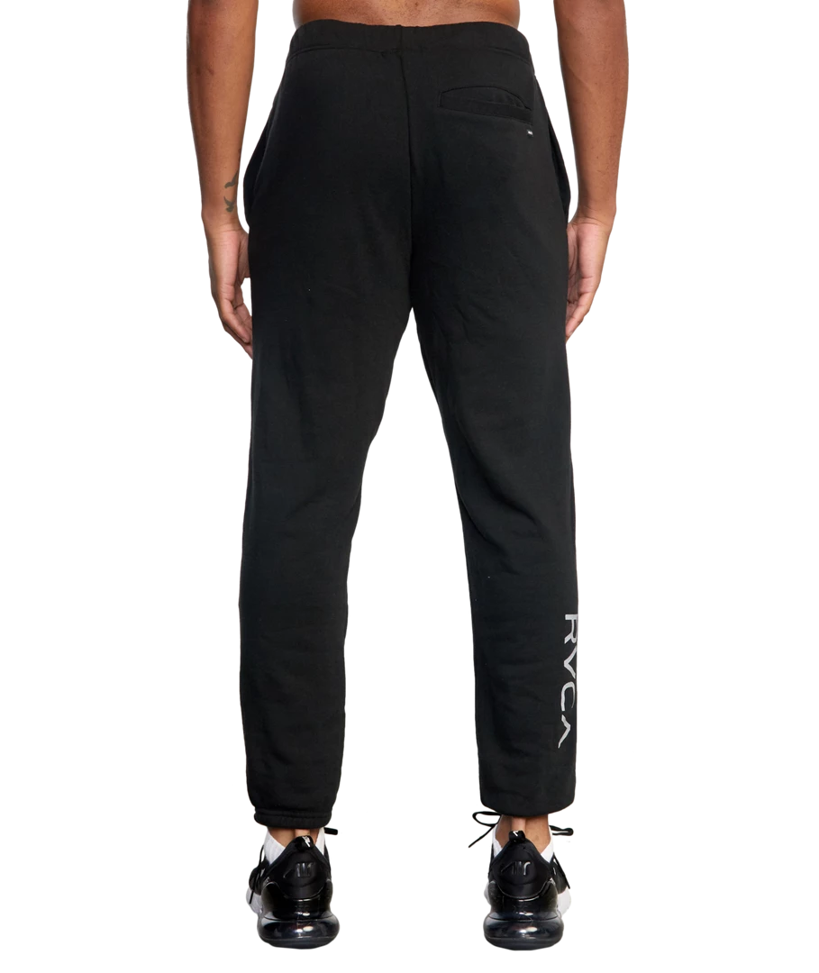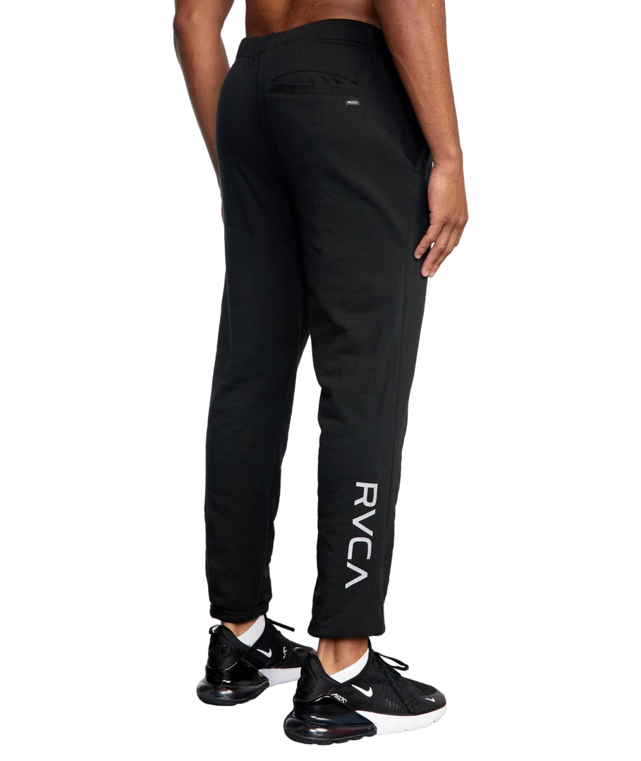 The Swift Sweat Pant is a cotton-blend fleece sweatpant with an elastic waistband, shrink wrapped drawcords, and front welt pockets. It has a relaxed fit at the hips and thighs and a tapered skinny fit through the legs. It’s finsihed with reflective VA print at the wearer’s left thigh, a RVCA print at the wearer’s back right leg, and a single welt back pocket.