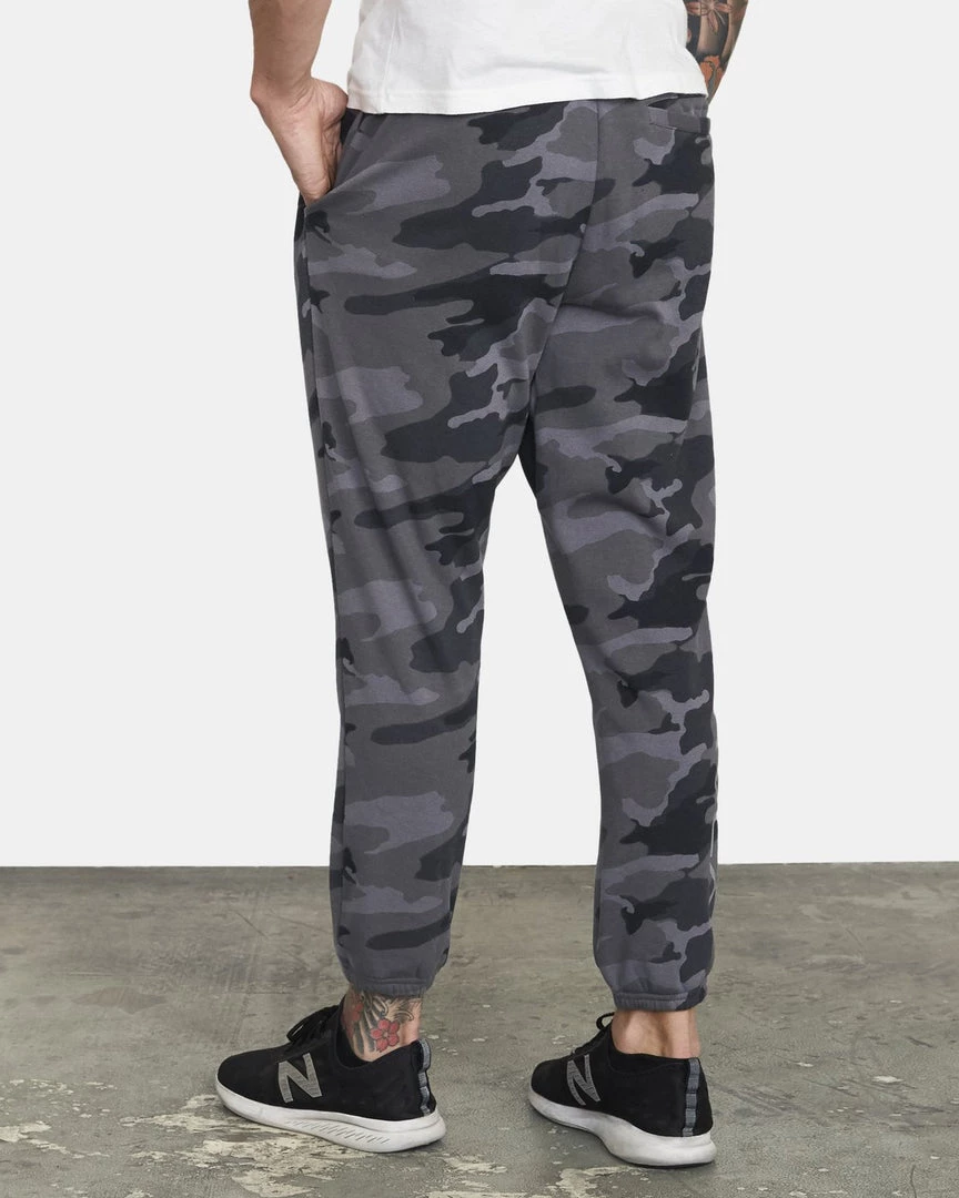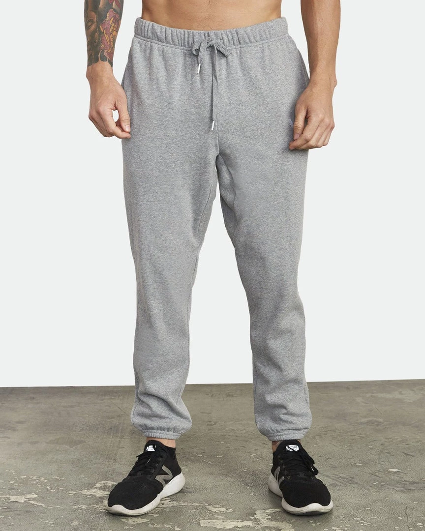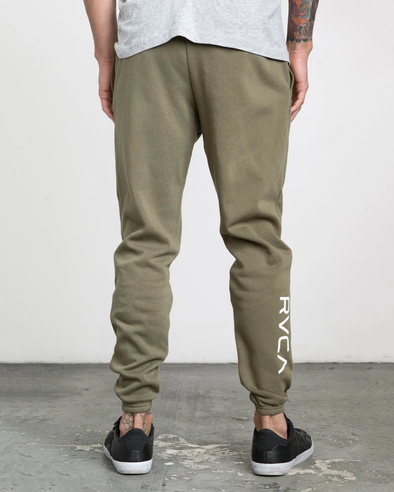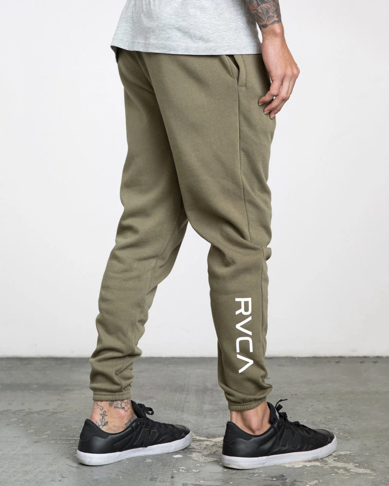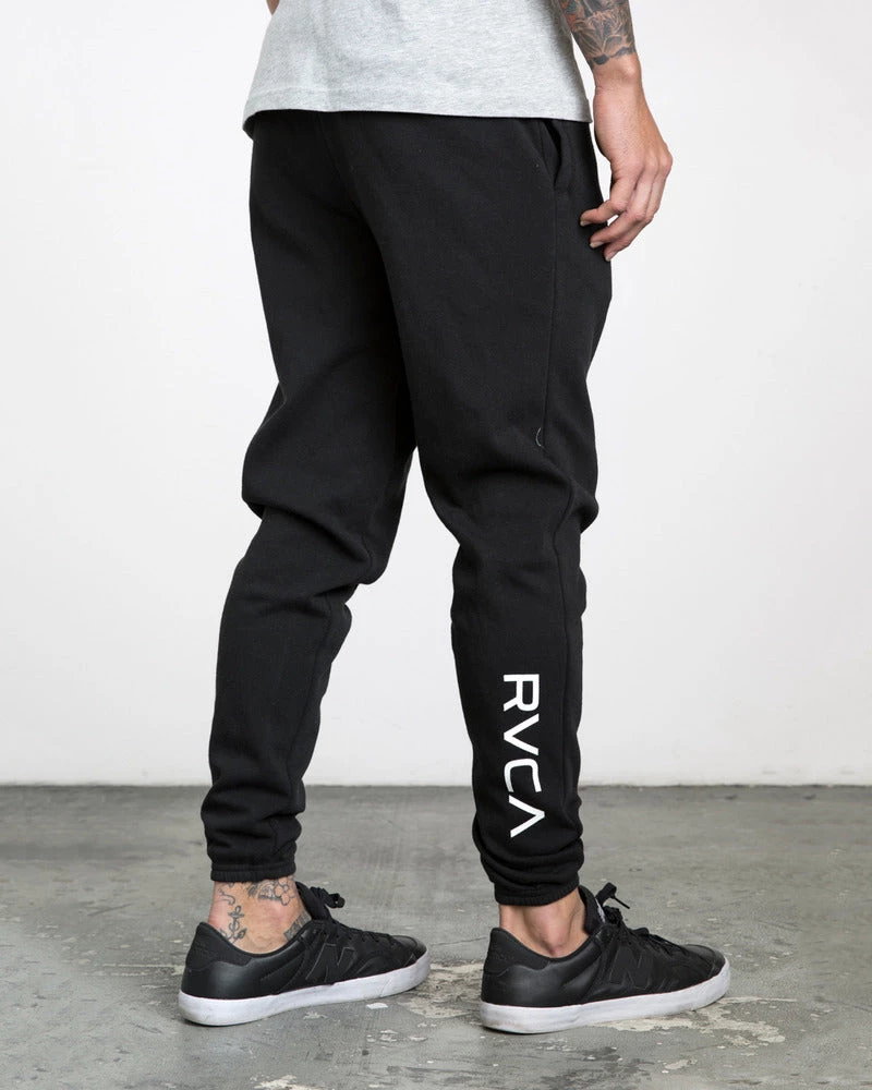 The Swift Sweat Pant is a cotton-blend fleece sweatpant with an elastic waistband, shrink wrapped drawcords, and front welt pockets. It has a relaxed fit at the hips and thighs and a tapered skinny fit through the legs. It’s finsihed with reflective VA print at the wearer’s left thigh, a RVCA print at the wearer’s back right leg, and a single welt back pocket.