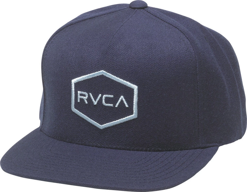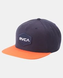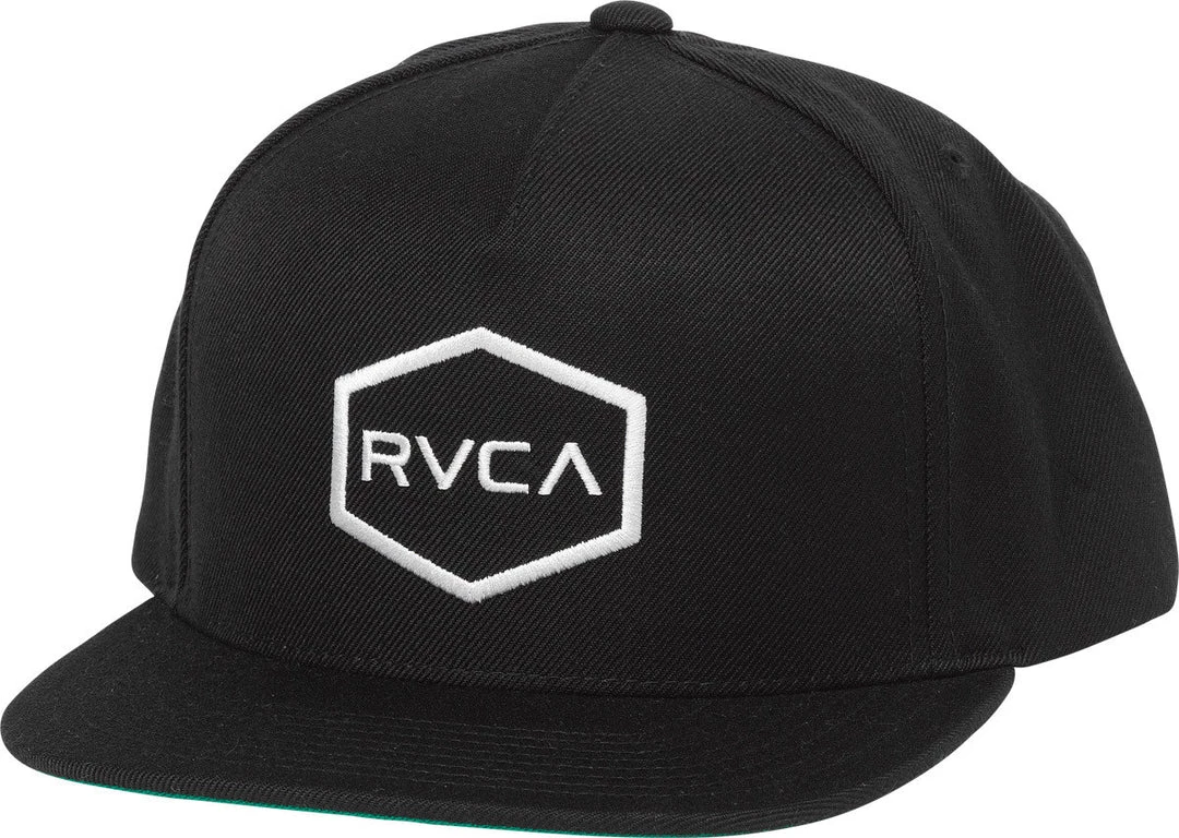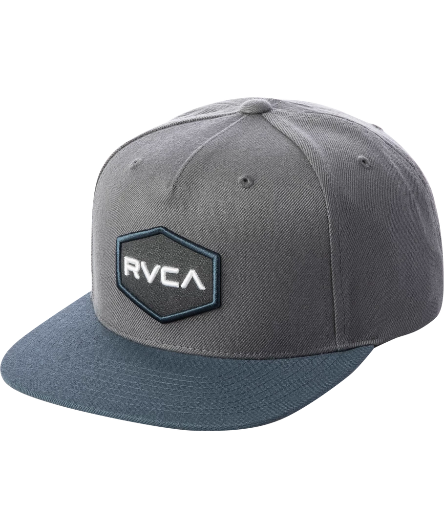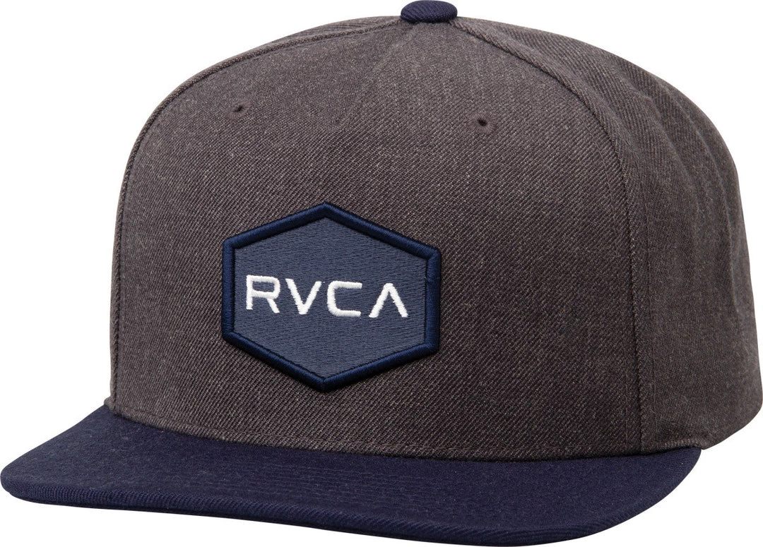 The RVCA Commonwealth Snapback is a snapback hat with an embroidery detail at the front and a VA patch at the back.