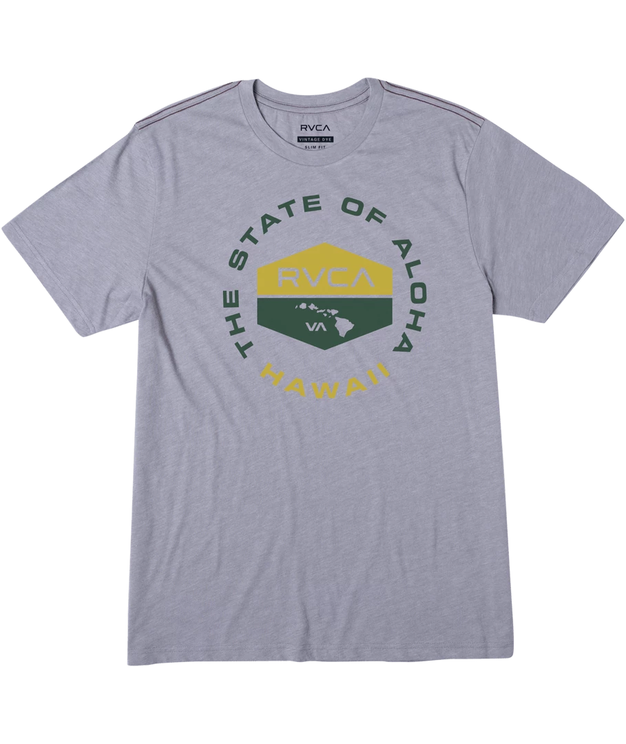 The Hawaii focused short sleeve tee puts the aloha vibe front and center with a straightforward, vintage-like screen print graphic across the chest. With the red stitch seal, this t-shirt is super soft, breathable, and offers a heritage, time-tested look. Fit is on the slimmer side. Â