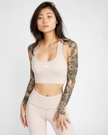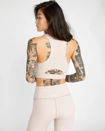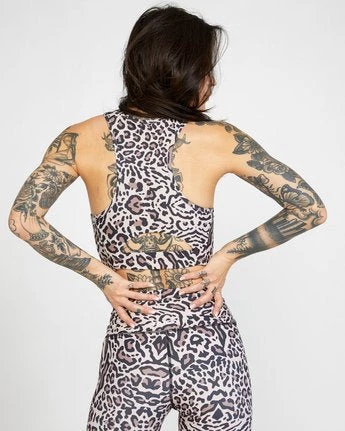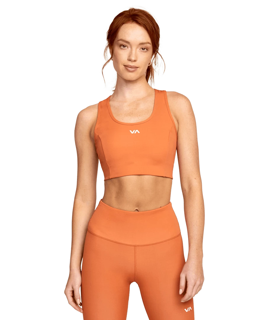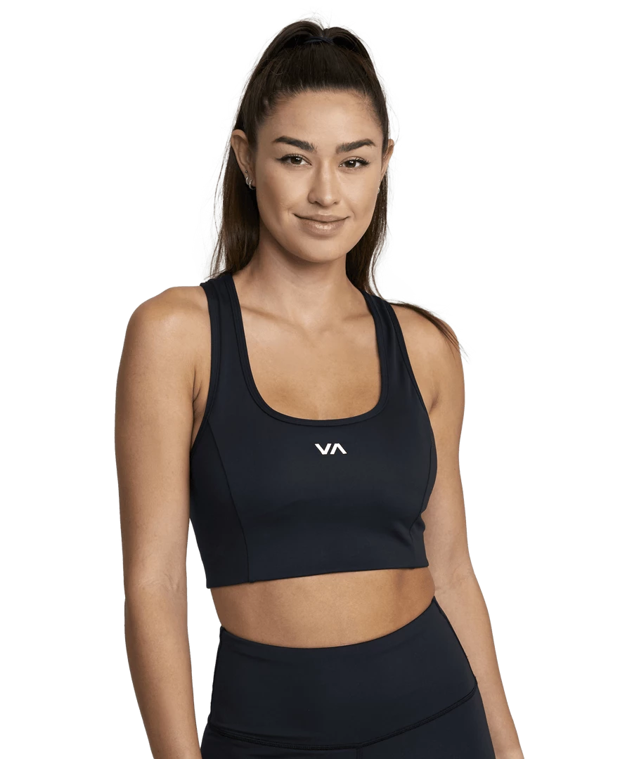 Supporting your training session with sustainable performance fabric, the RVCA VA essential sports bra is now made with recycled fabric. A staple workout bra, reinforced with moisture-wicking, anti-microbial properties to keep you dry and odor-free, the women’s workout top adds clean, modern design. Balancing support, style and comfort, the solid or animal print sports bra offers medium support with a scoop neckline and half-moon cut-out detail at the back. Â