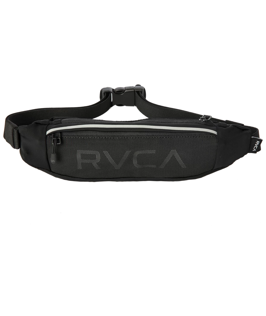 The perfect grab and go bag. The RVCA VA Running waist pack offers lightweight organization on the go. Made from recycled poly-elastane, this waist pack features pockets throughout for your needs, adjustable straps and ribbon clip for your keys. Topped with RVCA Logo Branding. Â