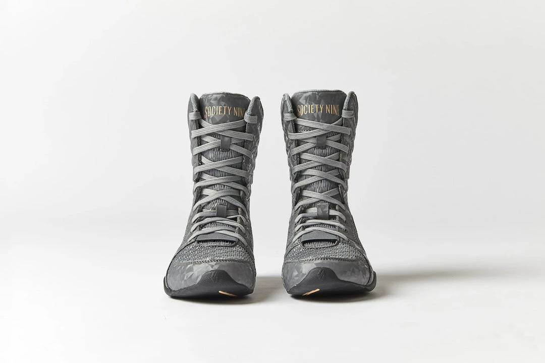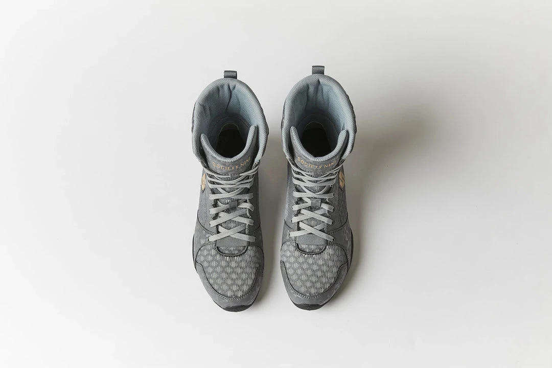 - 100% rubber Society Nine branded outsole, durable for ring and street wear-and-tear