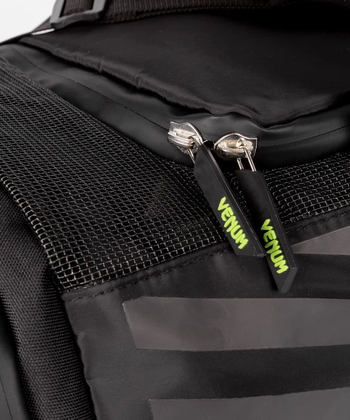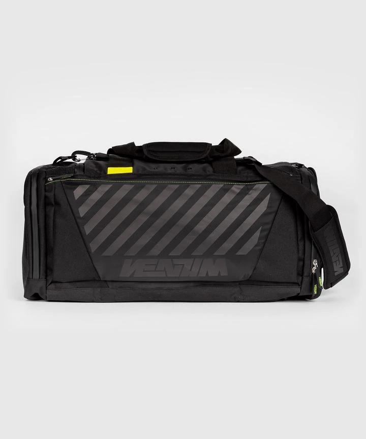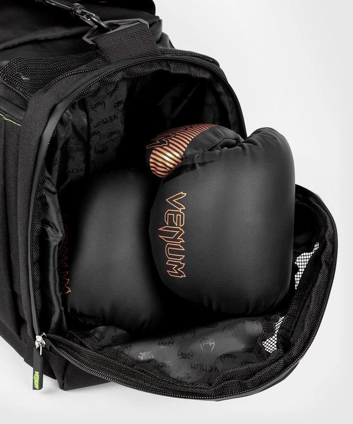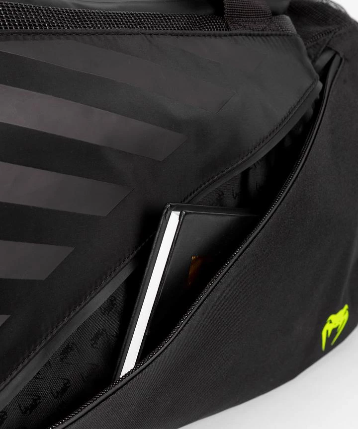 The Venum Stripes sports bag has a ventilated main compartment as well as secondary pockets on the side, front and upper parts.